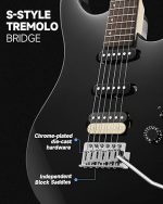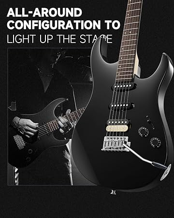 DMT-66 39 inç tam boy elektro gitar, yeni başlayanlar için, başlangıç elektro gitar seti, çantalı, siyah