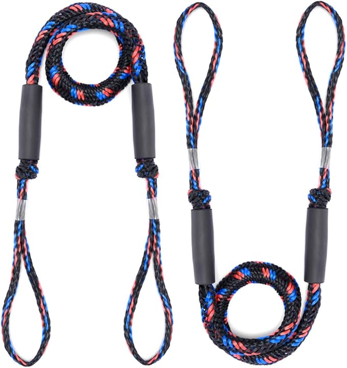 Dock Line bağlama halatı, tekneler için, rıhtım halatı, bungee rıhtım ipleri, kano, tekne ankraj aksesuarı, 2’li paket (siyah + mavi + kırmızı)