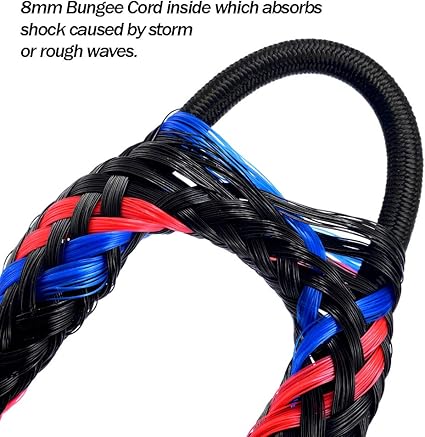 【Avantaj】 Darbeleri emer ve bükülmüş olmayan iplerden kaynaklanan kenetlenmiş teknenizde sallanmaktan ve çekmekten kaçının. Bungee Dock çizgisi tekneniz otururken güvenlik sağlar.