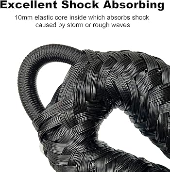 İki EVA köpük şamandıra tekneyi sürtünmeye karşı korur. Bungee Dockline 100 cm uzunluğunda, 1,5 m’ye kadar esneyebilir.