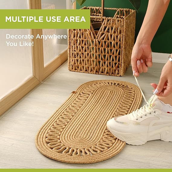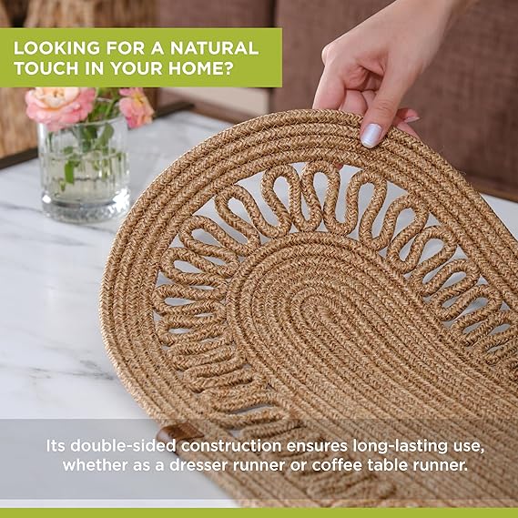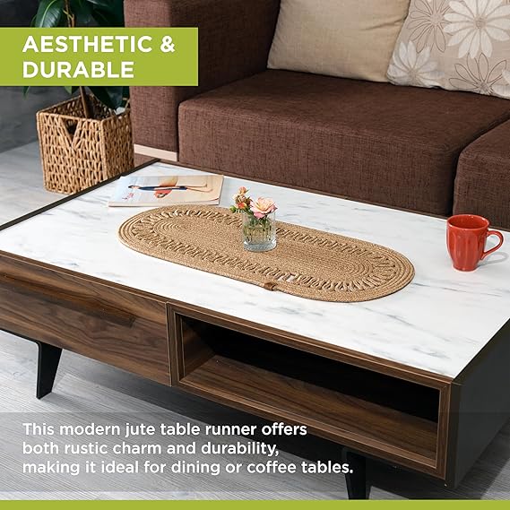 Doğal Jüt Dokuma Masa Örtüsü, Örgülü Sehpa Yolluğu, Oval Masa Örtüsü Yemek Masası veya Teras için (Standart)