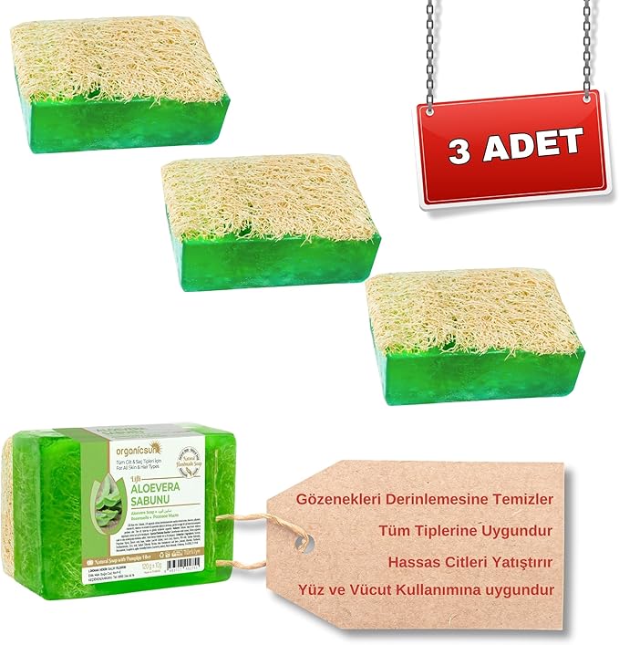 Organicsun Kabak Lifli Aloe Vera Sabunu ile cildinizin ihtiyacı olan bakımı sağlayın ve doğanın mucizesini hissedin. Şimdi, doğal güzelliğinizi keşfedin! ✨