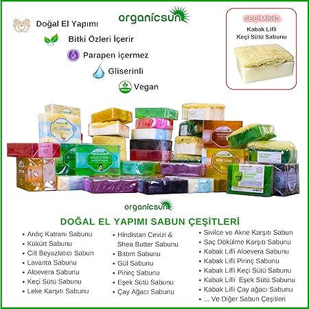 Organicsun Kabak Lifli Keçi Sütü Sabunu ile cildinizi şımartın. Doğal güzelliğinizi ortaya çıkarın ve sağlıklı bir cilt için adım atın!
