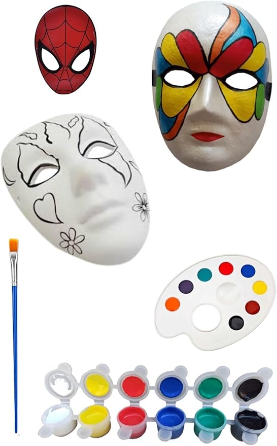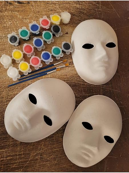 Doğal Seramik Hamuru 3 Adet Karton Maske Boyama Faaliyeti, Resim Başlangıç Seti, 3erli Set, Maske Boyama Seti karışık