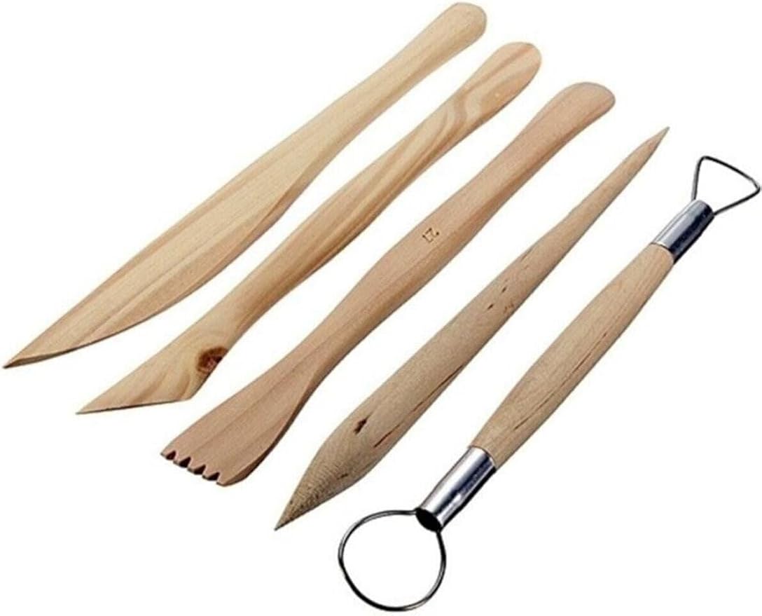 Doğal Seramik Hamuru Ahşap Ebeşuar Seti (modelaj Kalemi) 5’li beyaz
