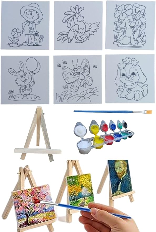 Doğal Seramik Hamuru Mini Şövale Çizimli Resim Başlangıç Seti, Akrilik Boya, Fırça, Şövale Çocuk Hediye Ressam Seti