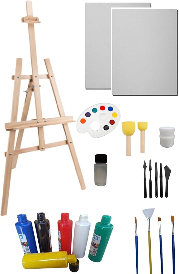 Doğal Seramik Hamuru Resim Başlangıç Seti -Büyük Şövale (şövalye), 2 Tuval (tual seti), Ressam Resim Seti karışık
