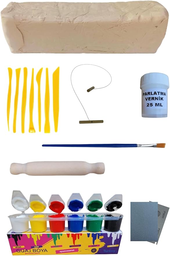 Doğal Seramik Hamuru Seramik Hamuru 4000 Gr, 7li Plastik Ebeşuar (modelaj Seti), Kesme Teli-ipi, Guaj, Doğal Kil Çamuru karışık