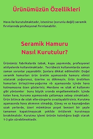 “Doğal Seramik Hamuru Seramik Hamuru 4000 Gr, 7li Plastik Ebeşuar (modelaj Seti), Kesme Teli-ipi, Guaj, Doğal Kil Çamuru karışık” için yorum yapan ilk kişi siz olun Yanıtı iptal et