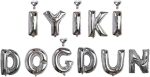 Doğum Günleri için İyi Ki Doğdun Yazılı 11 Parça Gümüş Renk Harf Folyo Balon Seti Balonların Her Harf Ayrı Ayrı Balon 40 cm.