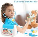 Güvenli ve dayanıklı: Doktor oyuncağı yüksek kaliteli, çevre dostu, gıda sınıfı ABS plastikten üretilmiştir Sertifikalı toksiksiz, BPA içermez, kurşunsuz ve ftalat içermez Pürüzsüz yüzey, keskin kenarları yok Süper değer seti: 16 parçalı rol yapma seti, stetoskop, cımbız, neşter, şırınga, makas, refleks çekiç, işitme koruması, ağız aynası, 2 hap şişesi, el feneri, termometre, tepsi, gözlük, doktor kartı ve kullanışlı bir kılıf