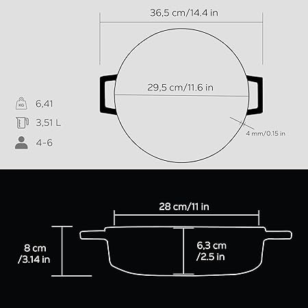 Yüksek kaliteli, emaye dökme demir yüzey her seferinde eşit, tahmin edilebilir ve lezzetli pişer. Balık veya tavuk kızartmak, güveç pişirmek veya fırında mısır ekmeği veya kurabiye yapmak için idealdir
