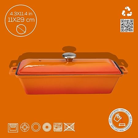 Döküm Ekmek Kabı/Terrine, 11×29 cm, Turuncu