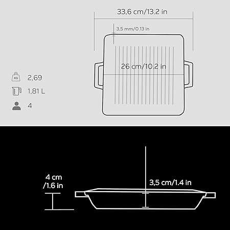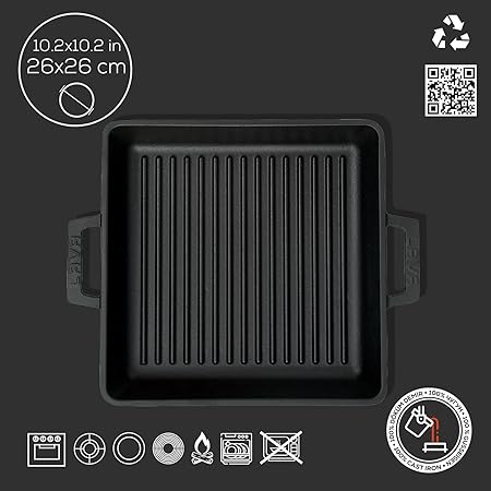 Döküm Izgara Tava, 26 cm, Metal Kulplu