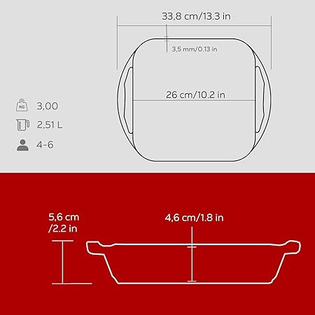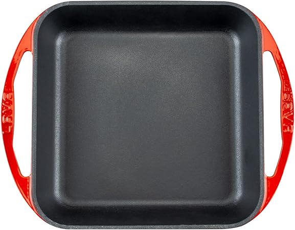 Döküm Kızartma Tavası, Kare, 26×26 cm, Kırmızı