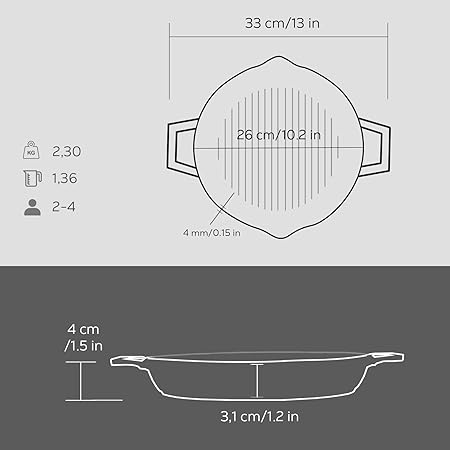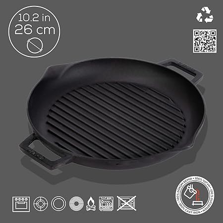 Döküm Yuvarlak Izgara Tava, Metal Kulplu, 26cm, Siyah