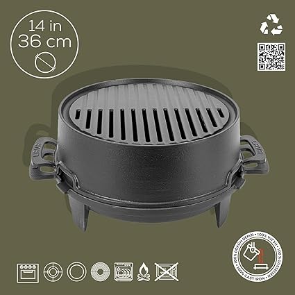 Döküm Yuvarlak Mangal Izgara Set Döküm Demir Yekpare Çift Kulplu Çap (Ø)36cm.