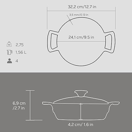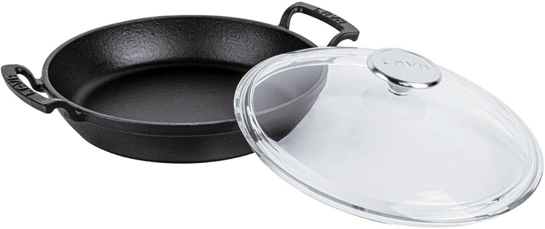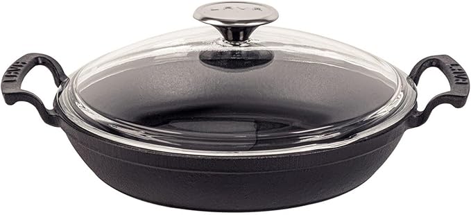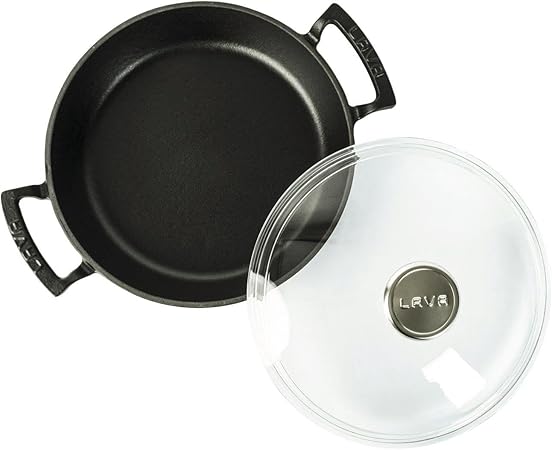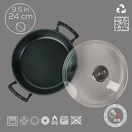 Döküm Yuvarlak Sahan Cam Kapaklı Döküm Demir Yekpare Çift Kulplu Çap(Ø)24cm.