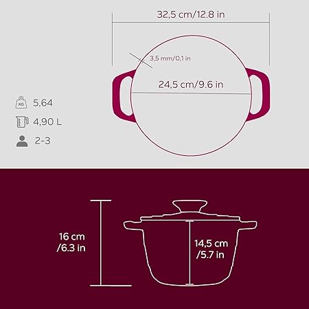 Döküm Yuvarlak Tencere Döküm Demir Kapak Experience Majolik Serisi Çap(Ø)23cm