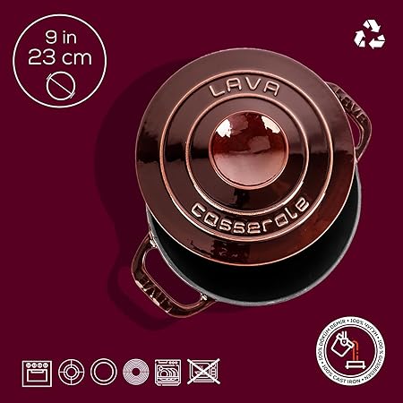 Lava Experience MajolikTencere. Yuvarlak. 23cm. Döküm Demir. Yekpare Kulplu. Emaye, Majolik.3 Kat, 3 Fırın. Döküm Demir Düz Kapak. Döküm Demir Tepe.