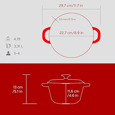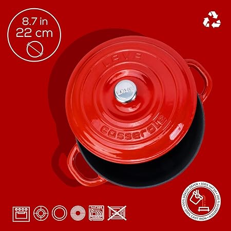 Döküm Yuvarlak Tencere Döküm Demir Kapak New Heritage Serisi Çap 22cm. Kırmızı
