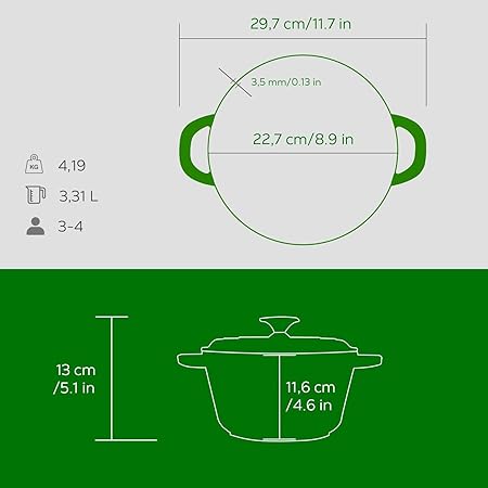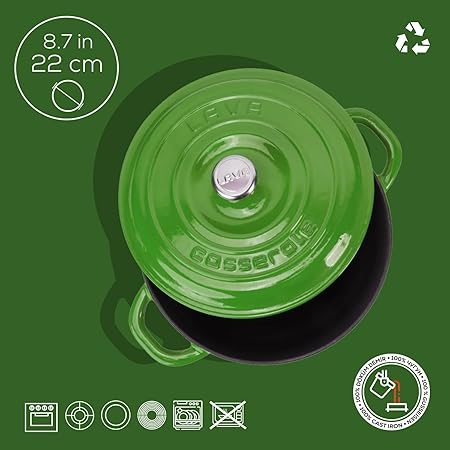 Döküm Yuvarlak Tencere Döküm Demir Kapak New Heritage Serisi Çap(Ø)22cm. Yeşil