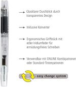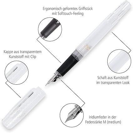 Dolma Kalem Bachelor, Şeffaf Dolma Kalem, İridyum Kalem F, Standart Mürekkep Kartuşları İçin Kartuş Doldurucu, Ergonomik Sap, Sürdürülebilir Dönüştürücü, Lettering/Bullet Journal/Kaligrafi İçin