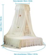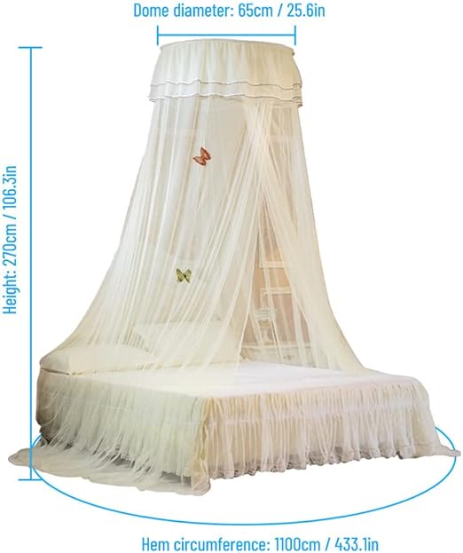 [GENEL BOYUT] 270cm / 106,3 inç Y, çember 65cm / 25,6 inç çapında ve kenar çevresi yaklaşık 1100cm / 433,1 inç, bu evrensel yatak kanopisi 1,2 m / 47,24″ ila 1,8 m / 70,86″ arası yatak boyutlarına uygulanabilir .