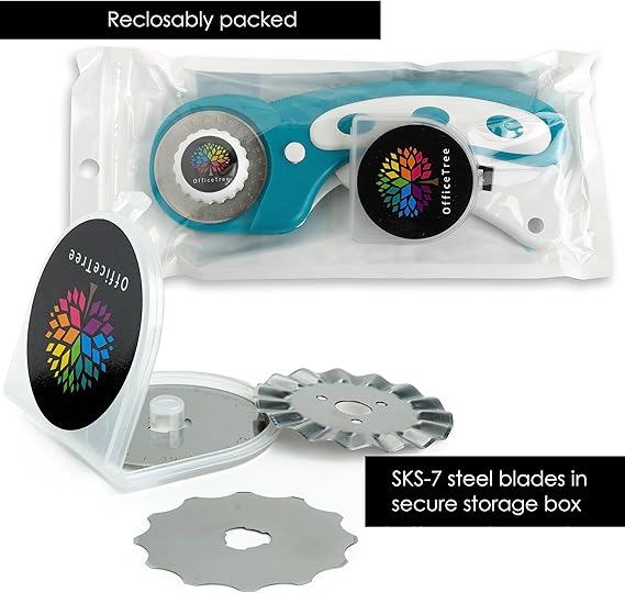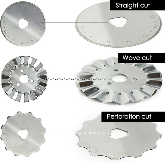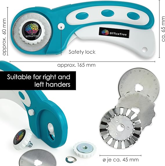 Döner Kesici Kumaş 45 mm – Kumaş Kesici Döner Kesici Seti 3 Bıçaklı – Döner Bıçak Kumaş Kağıt ve Duvar Kağıdını Zahmetsizce Keser – Dikiş veya El İşi için Kumaş Kesici