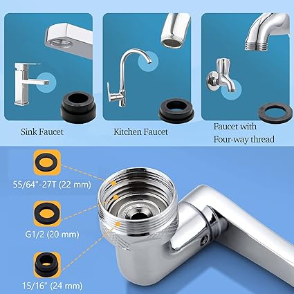 Musluk robot kolu – Bu musluk püskürtücü geniş dönebilir, lavabonun çoğu bölümüne kolayca ulaşabilir ve lavabonun tüm parçalarından kir ve tozu yıkayabilir. Lavabo armatürlerinde, mutfak armatürlerinde ve banyo armatürlerinde yaygın olarak kullanılır.