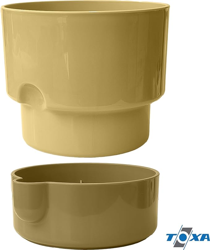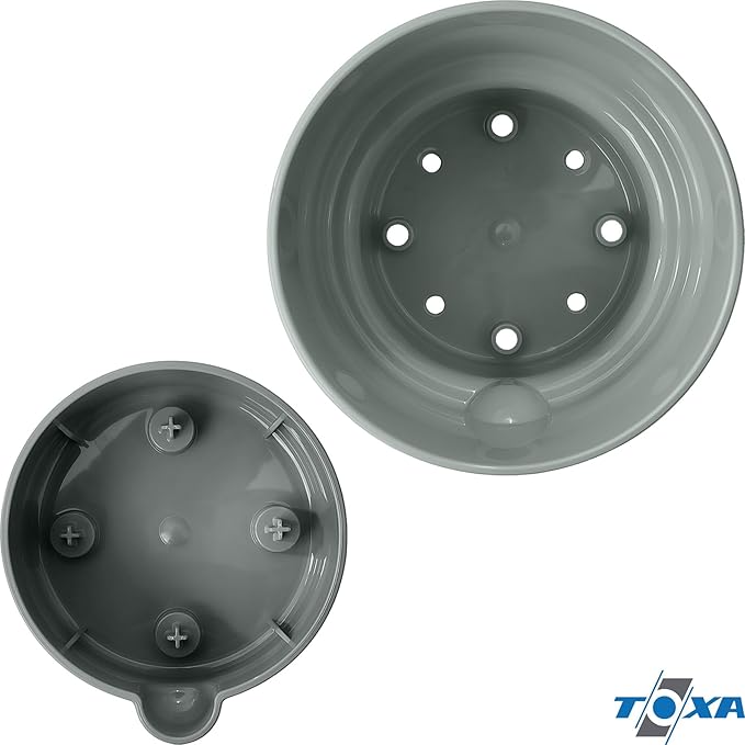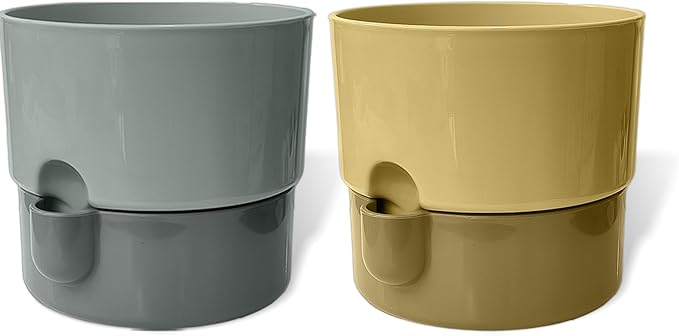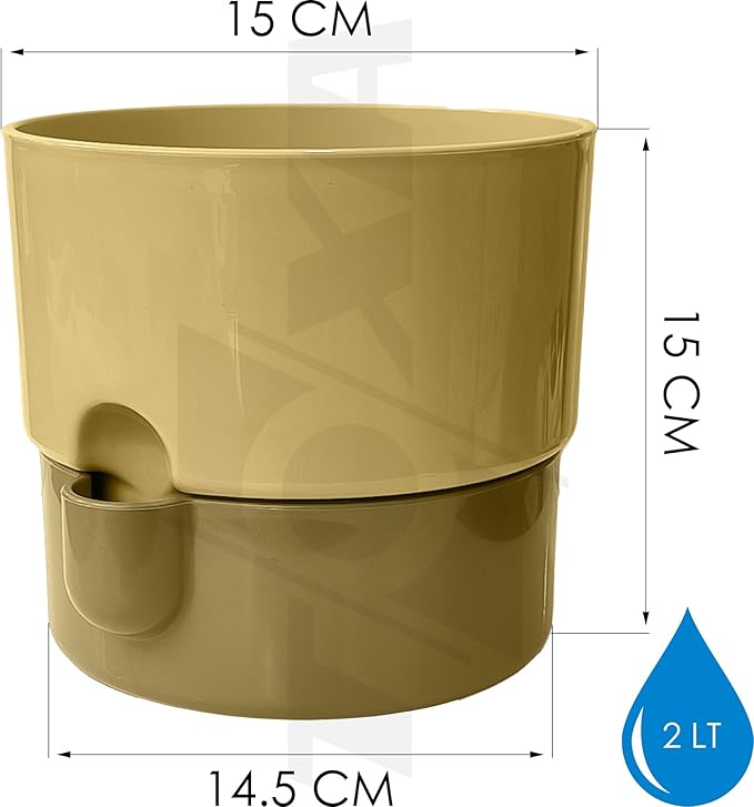 Dora Saksı Tabaklı Çiçek Kaktüs Saksısı Parlak Plastik Saksı (2 Adet, Gri&Krem, 2L, 16cm)