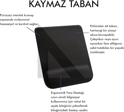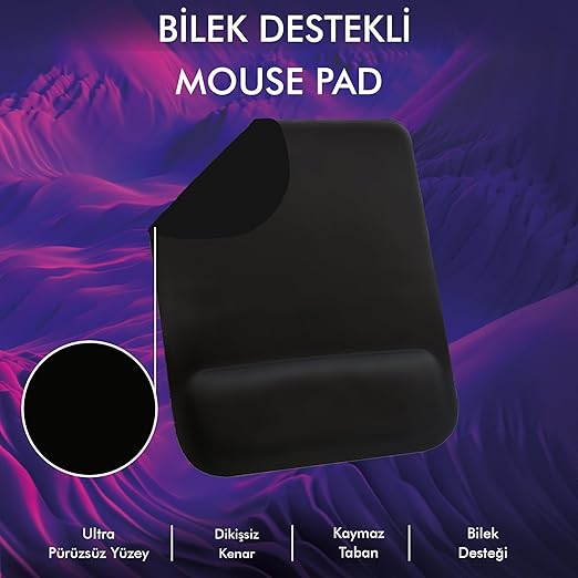 BİLEK DESTEĞİ: Mouse pad’de yer alan bilek desteği ideal yükseklikte olup bilekte oluşan ağrılarınızı en aza indirgemeyi amaçlayarak sizlere daha rahat bir ortam sunmak için ideal bir şekilde üretilmiştir.