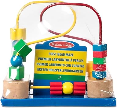 Ahşap sağlam bir zemin üzerindeki tellerde hareket edebilen iri boncuklar minikler için mükemmel bir aktivite oyuncağıdır