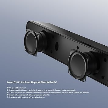 【Kompakt Tasarımı ile Taşınabilir】Lecoo DS111, modern ve şık siyah tasarımıyla öne çıkan bir Bluetooth hoparlör modelidir. Kompakt boyutları 38cm (U) 5cm (D) 60cm (G) ve hafif yapısı (540g) sayesinde, her yere kolayca taşınabilir. Hem iç mekânlarda hem de dışarıda kullanım için idealdir.