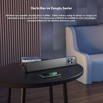 【Geniş Bağlantı Seçenekleri (Bluetooth/Kablo)】Lecoo DS111, hem Bluetooth hem de kablolu bağlantı seçenekleri (USB + 3.5) sunarak farklı cihazlarınız ile bağlantıyı kolaylaştırır. Müzik dinlerken özgürlüğün tadını çıkarın.