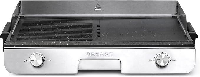 İki farklı pişirme yüzeyi 75°C ile 250°C arasında sıcaklık kontrolü Perfüzyon teknolojisi Plaka içine yerleştirilmiş ısıtma elemanı Çıkarılabilir döküm plaka Bulaşık makinesinde yıkanabilir parçalar 300 x 500 mm pişirme alanı Yağ tepsisi Katlanabilir yağ sıçratmaz Paslanmaz çelik gövde