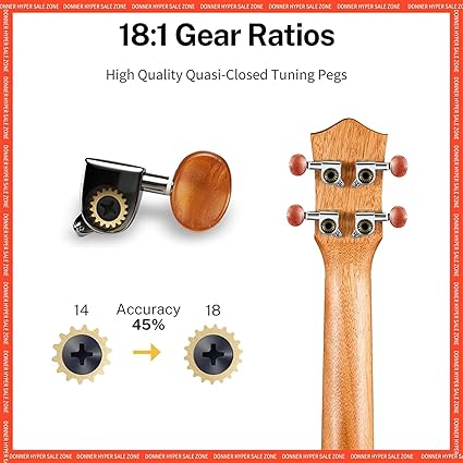 Donner DUC-100, stabil akort sunan patentli krom kaplamalı akort mekanizmasına sahiptir.