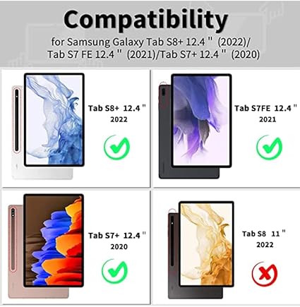Uyumluluk: Bu kılıf Samsung Galaxy Tab S8 Plus / S7 FE / S7 Plus 12,4 inç için tasarlanmıştır. Diğer modellere uymaz. Lütfen satın almadan önce tablet model numaranızı kontrol edin!