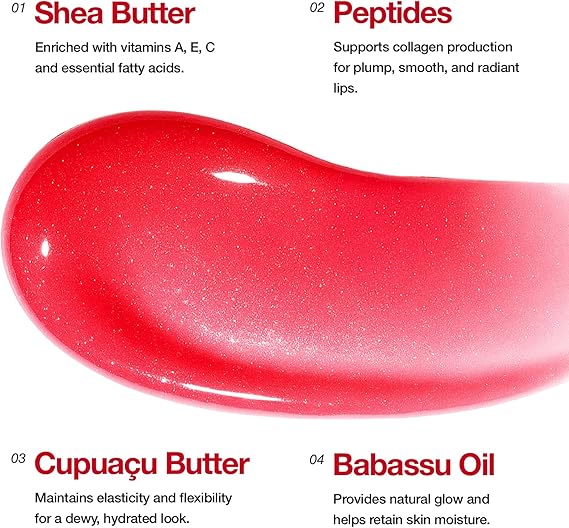 Doğal ve Besleyici Bileşenler Shea Yağı: Dudakları yoğun nemlendirir ve besler Peptit: Kolajen üretimini destekleyerek dolgunluk sağlar Cupuaçu: Esnek ve canlı bir görünüm kazandırır Babassu: Doğal parlaklık ve nem koruması sağlar