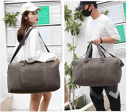 Duffel Çantası, Hafta Sonu Seyahat Tote Yoga Büyük Kapasite Tuval Seyahat Çantası Açık Hava Spor Salonu Çantası Erkek Kadınlar (L)