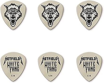 Dunlop, Box 6 James Hetfield White Fang 1,14mm akış Gitar Penası, PH122T114, S, Beyaz/Zengin Bahçe