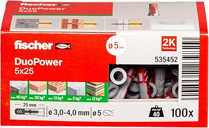 Teslimat kapsamı: 100 x DuoPower 5 x 25 (Ürün No. 535452) fischer