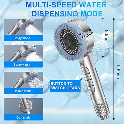 duş başlığı, su tasarruflu duş başlığı, fırçalı, 4 püskürtme türü, yüksek basınçlı el duşu, püskürtme tabancalı tasarruflu duş başlığı, çıkış başlığı, artık klora karşı kireç önleyici