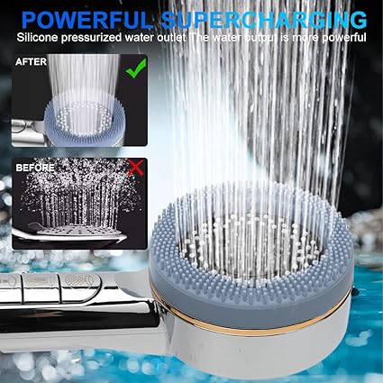 Yüksek basınç, verimli su tasarrufu: Filtreli duş başlığı dayanıklı, krom kaplama ABS malzemeden yapılmıştır ve yenilikçi hava basıncı teknolojisi ve su basıncını artıran eşit dağıtılmış silikon başlıklar kullanır. Böylece güçlü ama yine de yumuşak bir su püskürtmesi oluşur ve aynı zamanda su tüketimi azalır. Rahatlatıcı duş deneyimleri için idealdir ve özellikle çocuklu aileler, yaşlılar ve evcil hayvanlar için uygundur.