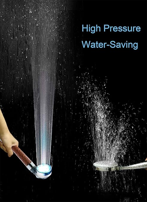Duş başlığı, su tasarruflu, yüksek basınçlı güçlendirme, 7 renk değişimli LED duş başlığı, iyon ve taş filtreli el duşu, SPA için duş başlığı