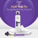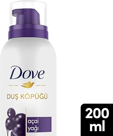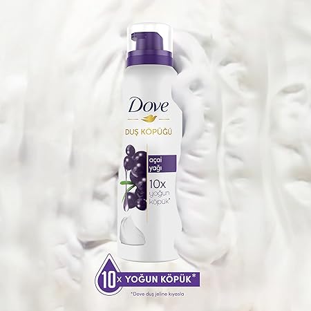 Dove Duş Köpüğü ailesinin yeni üyesi: Dove Duş Köpüğü Açai Yağı 10 kat yoğun köpük ve içeriğindeki nazik temizleyiciler ile Dove Duş Köpüğü, cildini nazikçe temizler ve duş ritüelinizi daha keyifli bir hale getirir