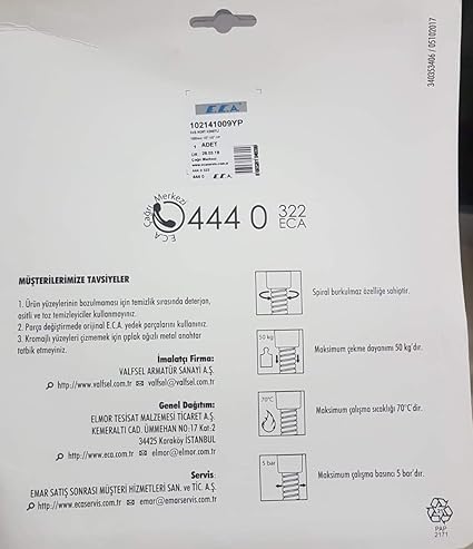 Ürün Kodu: ECA’nın kaliteli ve dayanıklı duş spiral zinciri ürünlerinden biri, 8e32736b-2e57-4fbf-8606-d5c3a3c359de numarasıyla tanınır.