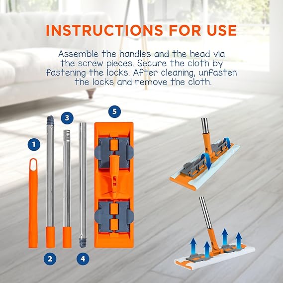 + Düz Mop Yer Temizlik Sistemi, Islak ve Kuru Kullanım, 360 Döner Başlıklı Pratik Paspas