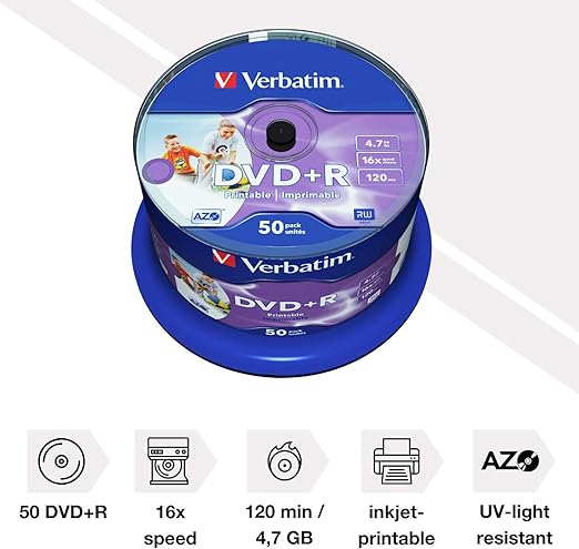 Uzun kullanım ömrü: Verbatim boş DVD dosyaları, film ve video gibi en önemli dosyalarınızı uzun vadeli ve güvenli bir şekilde saklamak için en iyi çözümdür.