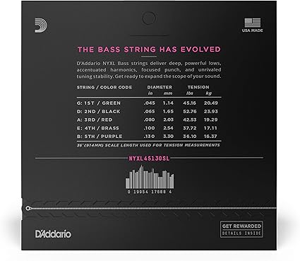 E Bass Gitar Telleri | Telleri E Bass | Bas Gitar Telleri | E Bass Telleri | Bass Gitar Telleri | E-Bas Telleri NYXL45130SL 45–130, Ekstra Uzun Mensur, 5 Telli, Nikel, Gitar